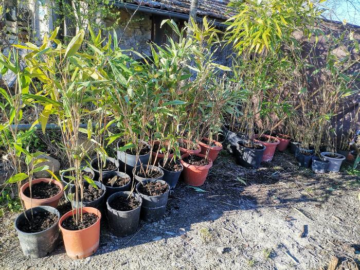 Plants de bambous, differentes espèces naines, petites moyennes et grandes : Pleioblastus viridistriatus, Pseudosasa japonica, Sasa palmata, Fargesia murielae simba, Phyllostachys nigra, Phyllostachys aurea. Prix selon espèce, volume du pot et de la plante, de 15 à 70 € A venir prendre sur place Utilisations variés : haies brise-vue, brise-vent, massif décoratif, fixation du sol des talus, plantes en pots, bricolage, phytodépuration... Détails, descriptions et utilisations dans le fichier pdf associé