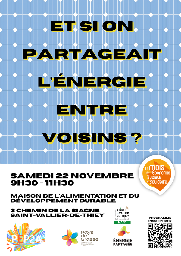 Vous avez, ou un de vos voisins a une installation photovoltaïque ? Savez-vous qu’il est possible de partagez simplement le surplus d’électricité produite par cette installation? PEP2A permet à ses sociétaires de mettre en place ce partage gratuitement dans l’ensemble des Alpes-Maritimes: une raison de plus pour rejoindre notre coopérative. Inscription conseillée via ce formulaire.
